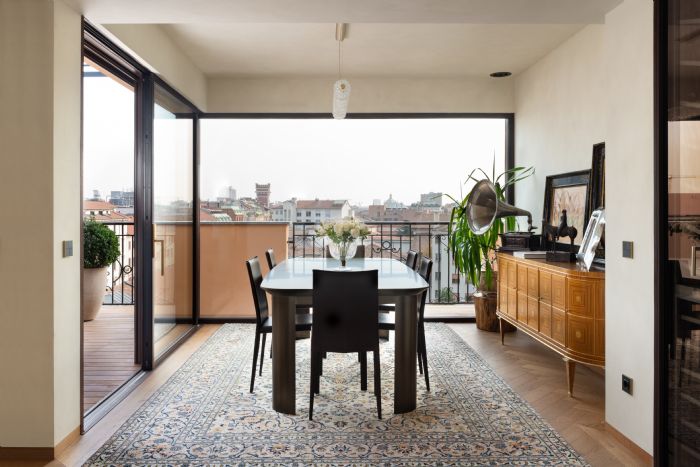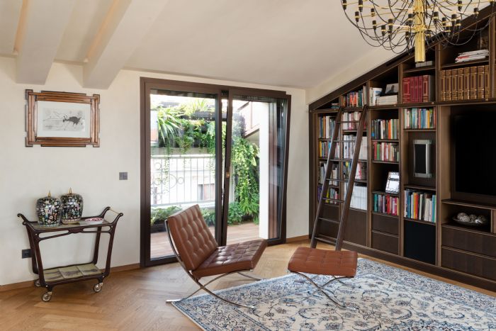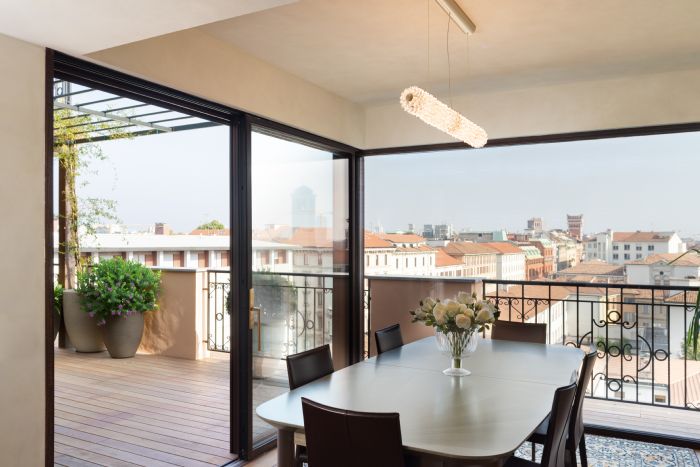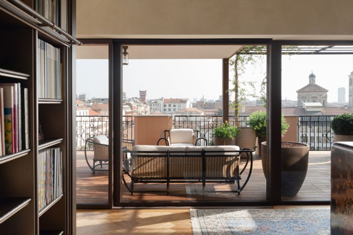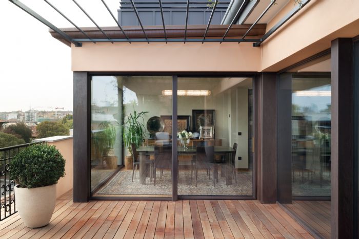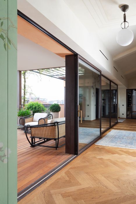 Attico a Milano – Infissi minimal in alluminio e scorrevoli in acciaio corten