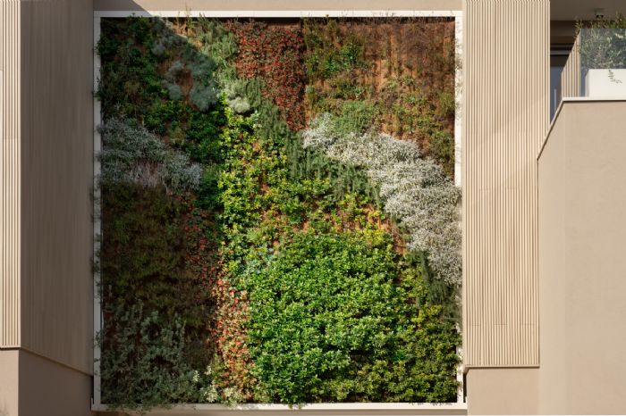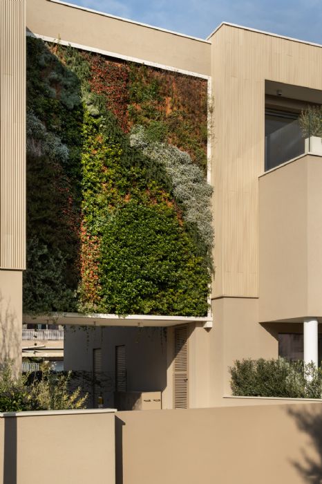 Il giardino verticale, voluto dall’architetto Fabrizio Fontana, aggiunge un tocco naturale e migliora il comfort abitativo.